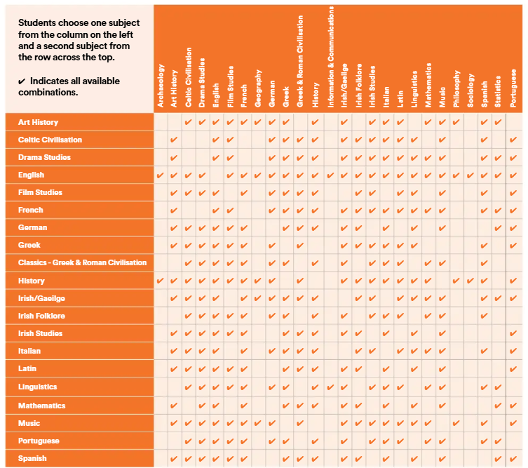 BA Arts (Joint Honours) DN520 Subject Combination Table