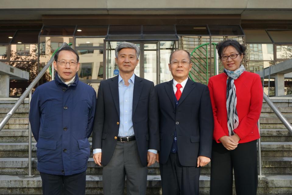 Group Photo in Front of UCD Agriculture & Food Science Centre (l-r: First Secretary Hong Jiqing, Ambassador He Xiangdong, Professor Da-Wen Sun, Madam Xia Lining)