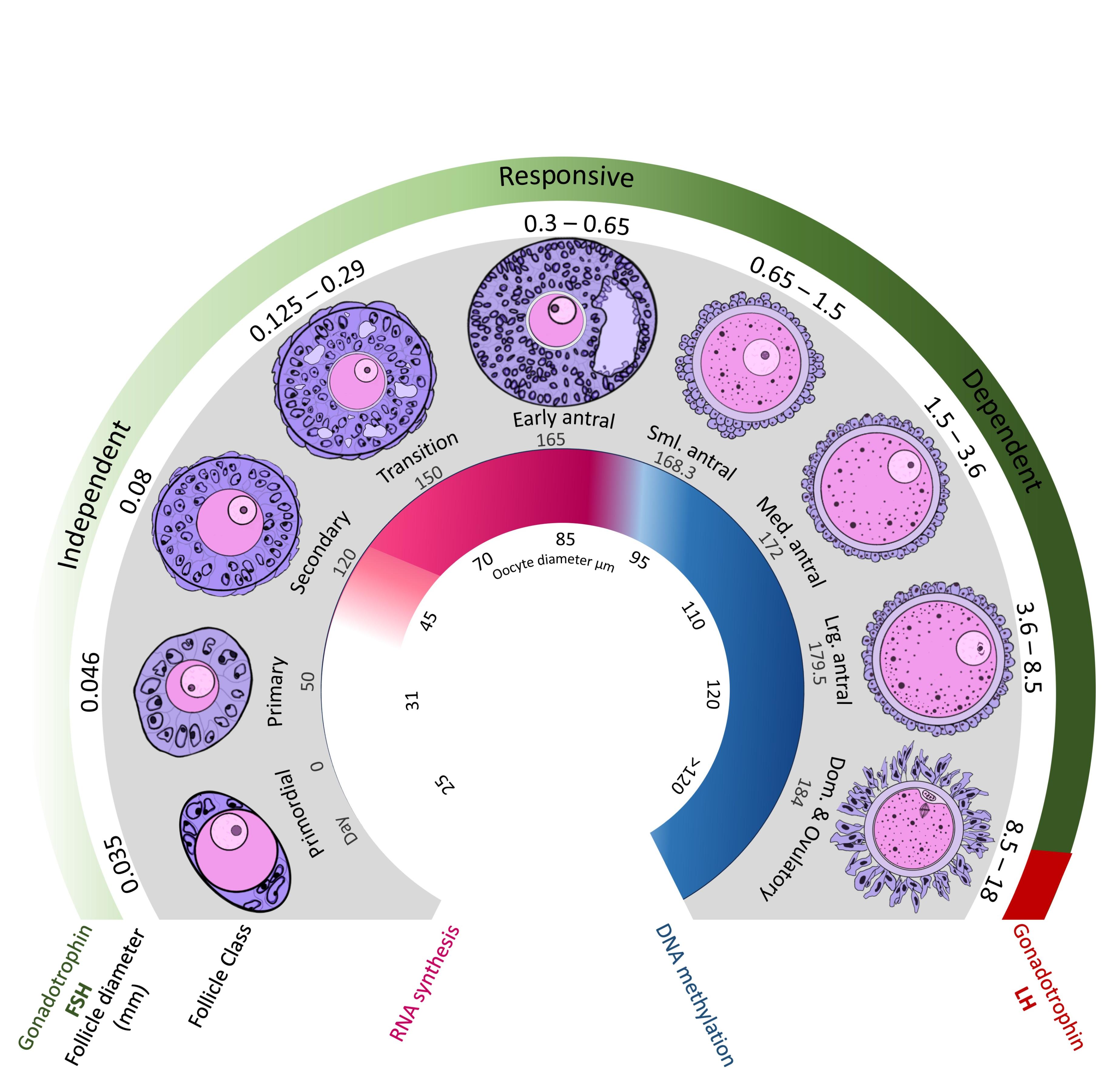 Pic: Schematic diagram depicting oocyte growth and follicle classification in cattle. (opens in a new window)Fair and Lonergan (2023)