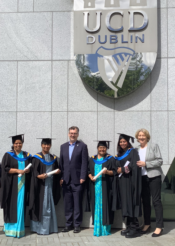 In December 2023, PINNACLE scholars Jyoti Thomas, Hema Barretto, Neha Munir and Libymol Augustine graduated in with their MA (Ed) degrees. Thanks to the UCD Registrar Professor Colin Scott who personally congratulated them.