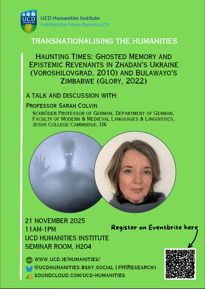 Serhiy Zhadan’s novel Voroshilovgrad (2010) is set in a fictional Ukraine in the early 2000s, an imaginative world where the dead and the living intermingle; NoViolet Bulawayo’s Glory (2022) in a fictional Zimbabwe in the 2010s, where the protagonist encounters ghosts from a past that has not been dealt with. The talk and discussion will consider how the novels expose the repressive practice of epistemic ghosting and stage the resistant practice of epistemic haunting. Those who have been ghosted return, bringing (back) memories and history that complicate linear and singular memory management.