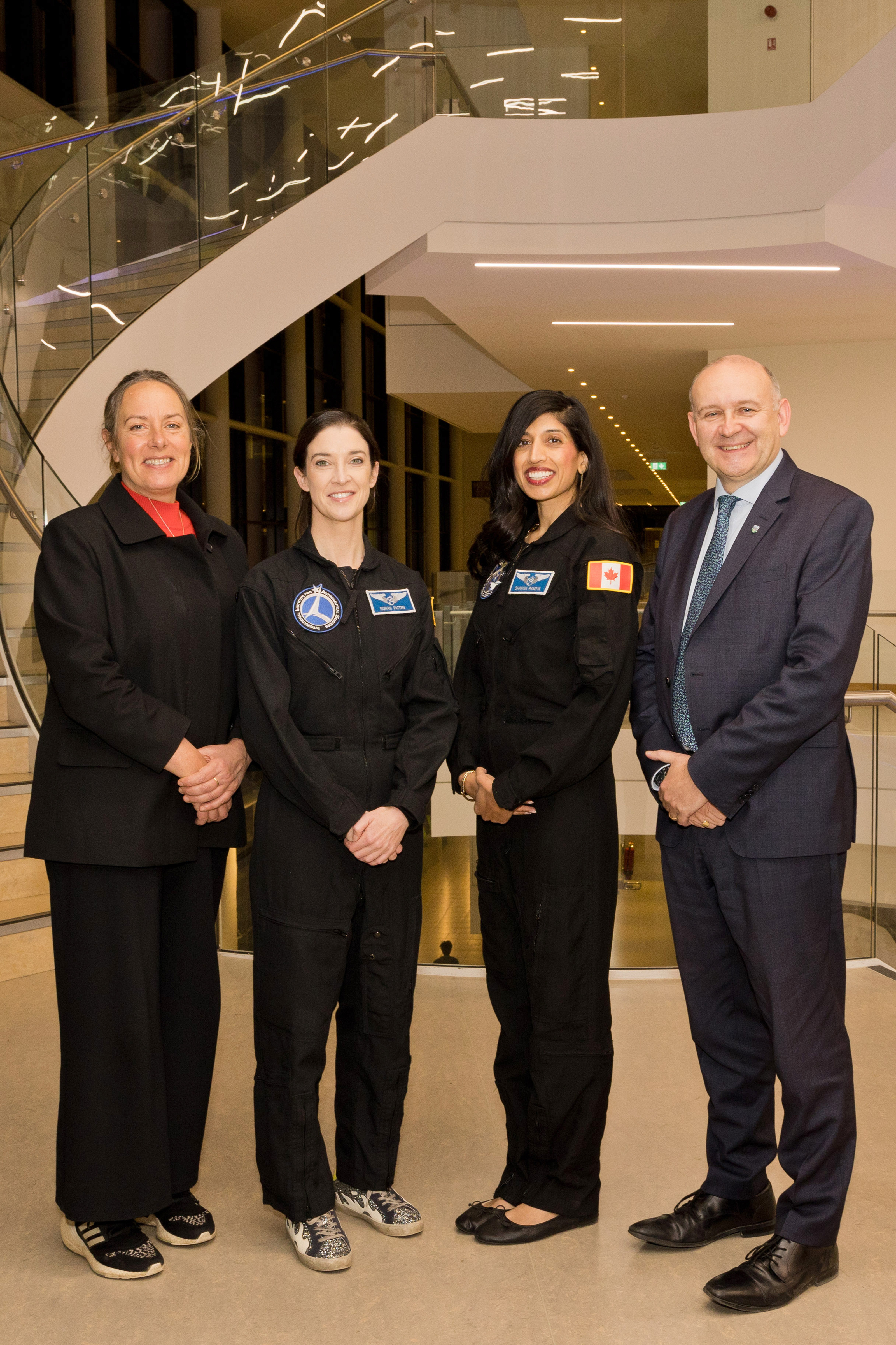 The Canadian Embassy in Ireland organised a visit from Shawna Pandya (Canadian astronaut) and(opens in a new window)Norah Patten(first Irish astronaut) we had the honor of welcoming them to UCD on21stNov.This isin preparation for their sub-orbital flight (virgin galactic delta, IIAS-02), the first all-female research spaceflight. The event was hosted by Prof Kate Robson Brown, UCD Vice-President for Research, Innovation and Impact