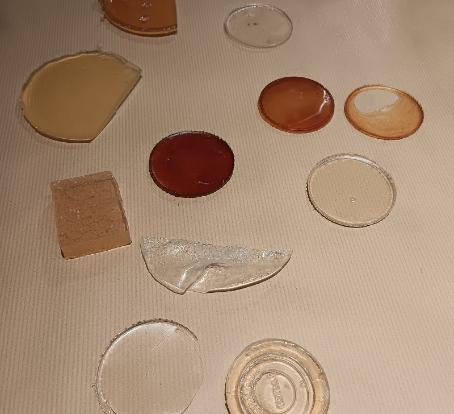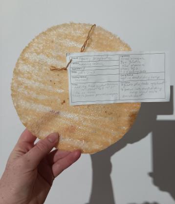 Biopolymers from Tanja's lab (left) and foamy bioplastic made by artist Eileen Hutton (right).