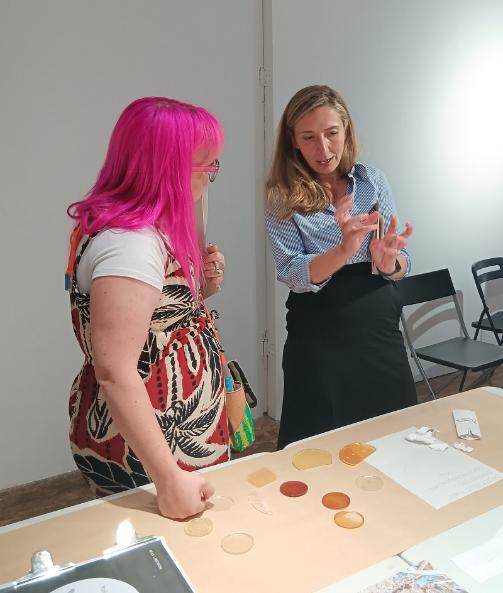 Artists Martina and Eileen discussed the role of biomaterials in their work, our connection to place and the non-human, and art’s role in speculation and the imagination of new ecological relationships. Afterwards, participants explored materials created by the artists and by biotechnology processes in the labs.