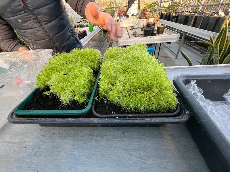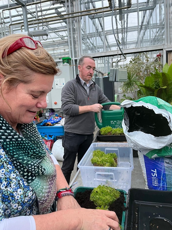 Noeleen says it was a unique request. “The challenge was to keep these artificially propagated sphagnum samples alive and thriving until Fiona's exhibition. We tried a few different techniques using the growth chamber in the lab and the heated propagation bench in Rosemount. The aim was to give them enough heat to keep growing but not too much to cause them any stress and also to keep them humid as they don't tolerate drying out at all. We were delighted with how well they grew and thrived from the treatments applied! It was wonderful to work with Fiona on this. Horticulture is defined as science and art and this is a great example of how this can happen”.