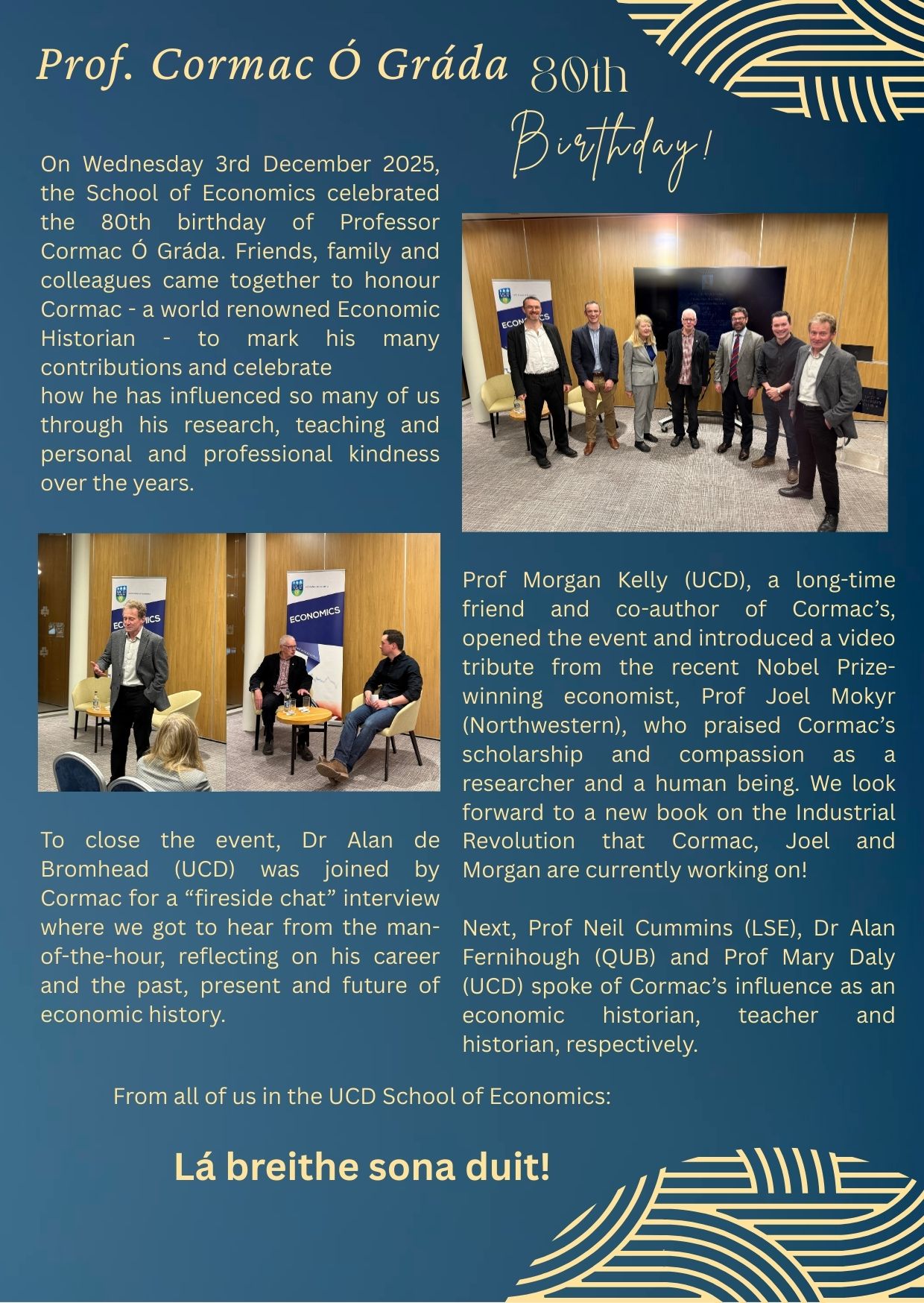 - Prof. Cormac Ó Gráda 80th Birthday Celebration