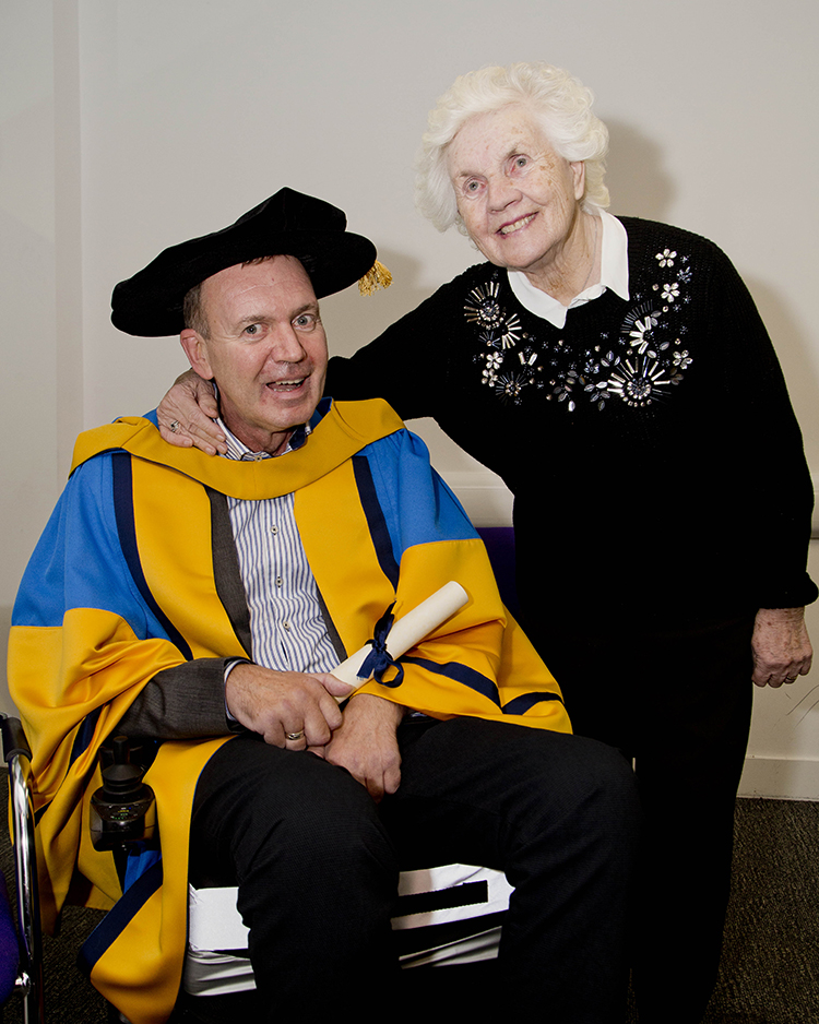 Father Tony Coote with his mother Patricia following his honorary doctorate conferring by UCD