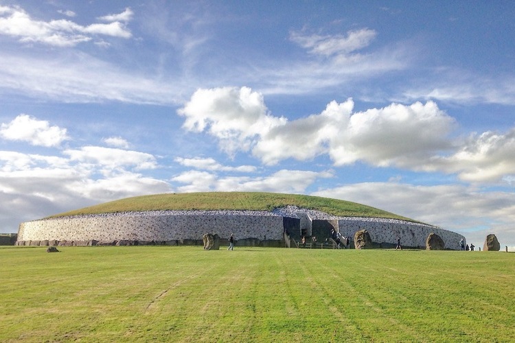 The more ‘developed’ passage tombs such as Newgrange, dated 3300-3000 BC, found in the Boyne Valley incorporate kerbstones, orthostats and other stone elements sourced from long distances, up to 75 km in the case of quartz and granite used at the World Heritage Site.