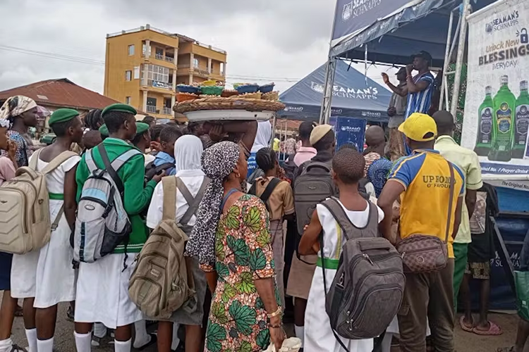 A street marketing of a brand of schnapps. The spectators are mainly primary and secondary school students. Credit: Ogochukwu Odeigah