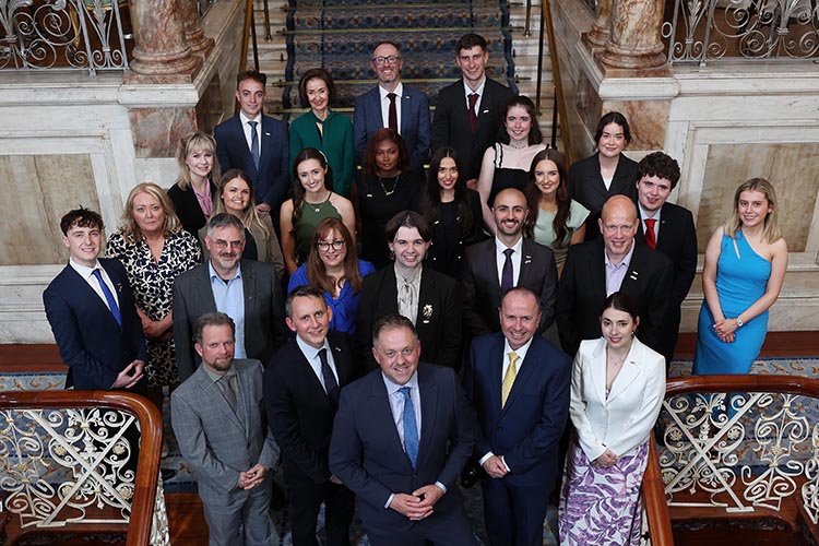 The 2024-25 Fulbright Irish Awardees with Minister Byrne, US Embassy Deputy Chief of Mission Mike Clausen, Fulbright Chair Professor Paul Donnelly and Dr Dara FitzGerald