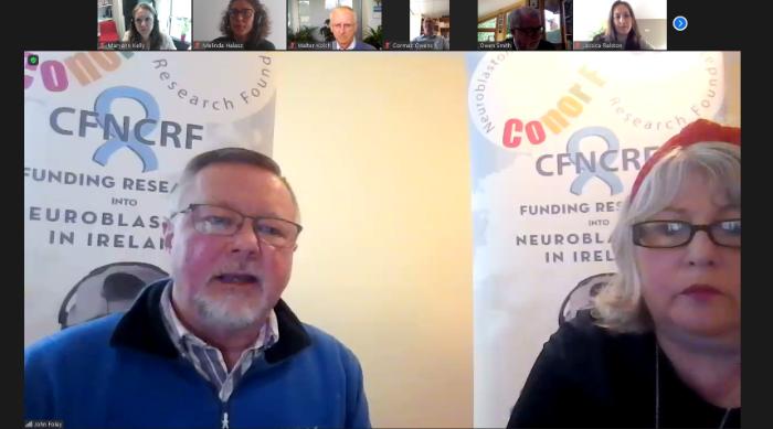 The event lasted for approximately an hour with 37 attendees, and covered a broad range of perspectives, from treatment challenges in the clinic to the physical/emotional/mental toll the disease takes on the patients, to the innovations being tested in the lab, to expanding public awareness overall. John and Margaret Foley also shared the very personal story of their son, Conor, who passed away from Neuroblastoma at the age of 17, and how they founded not-for-profit CFNCRF as part of his legacy. To date, the family has raised more than €135,000 for neuroblastoma research and have recently announced a call for research proposals under the Health Research Charities Ireland (HRCI) and Health Research Board (HRB) Joint Funding Research Fund.