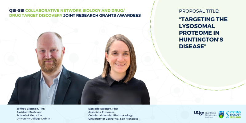 - "Targeting the lysosomal proteome in Huntington's Disease," from Danielle Swaney (QBI-UCSF) and Jeffrey Glennon (UCD); and