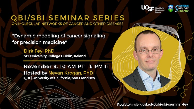Last month, SBI and the Quantitative Biosciences Institute at the University of California, San Francisco, launched the 2021/22 QBI/SBI Virtual Seminar Series on molecular networks of cancer and other diseases. The series aims to continue the collaboration between scientists from both the US and Ireland.