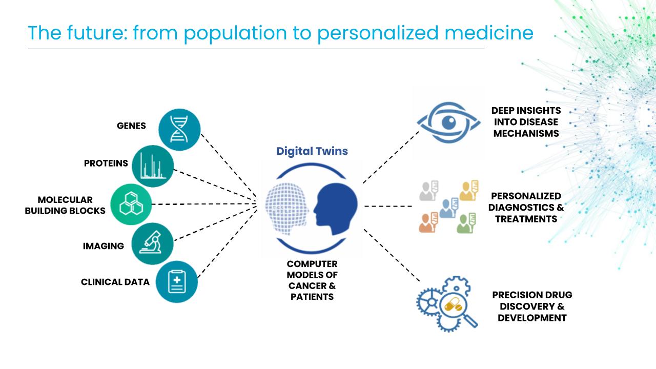 SBI strives to both improve current drug treatments (i.e., developing combinations of existing drugs that are more efficacious with less toxic side effects), and also to develop new anti-cancer drugs by identifying new targets that are based on their biological network context. To tailor such treatments to individual patients we are also constructing Digital Twins of cancer patients.