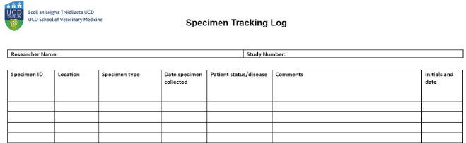 Figure 3. Example of specimen tracking log.