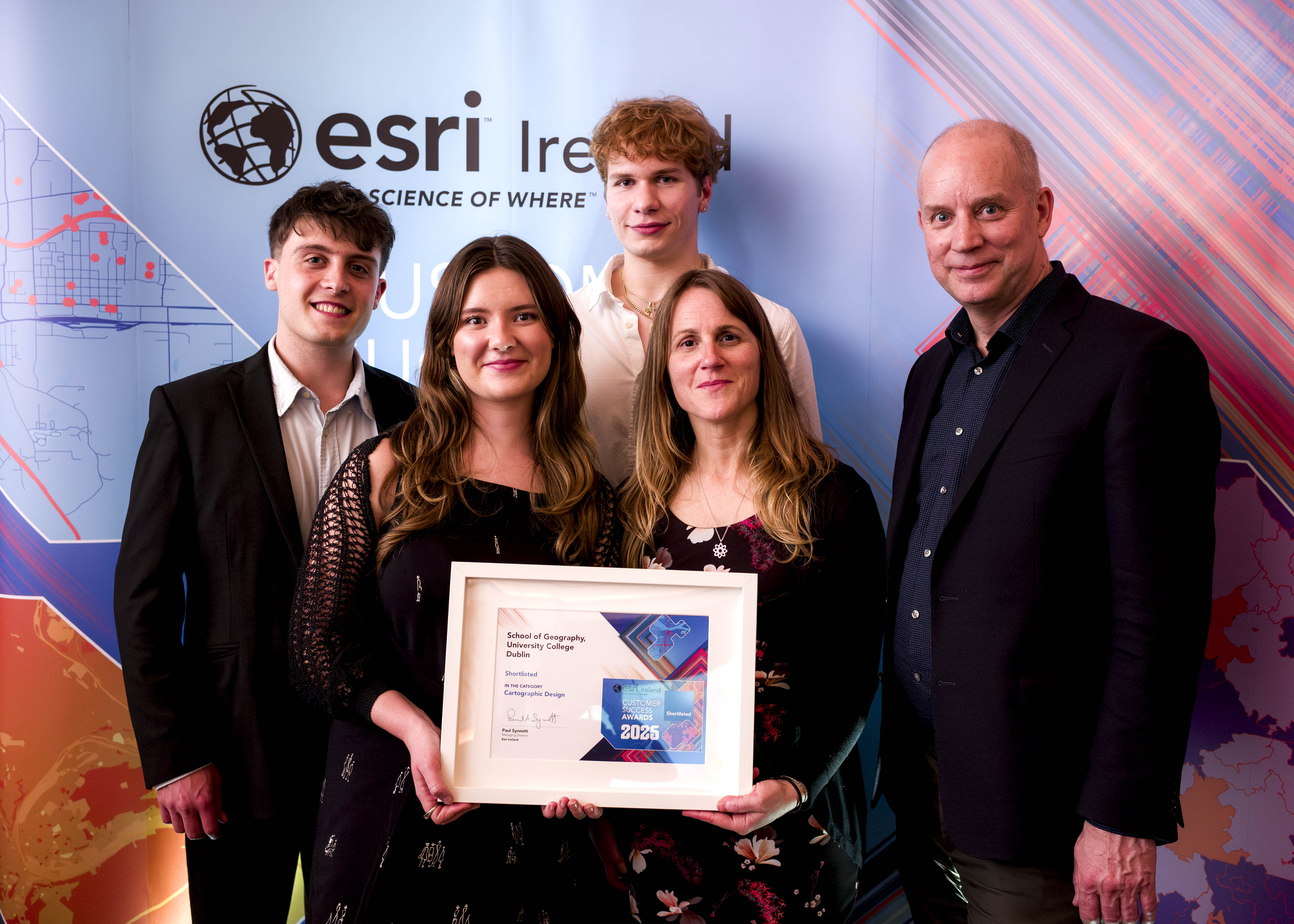 The UCD Sustainability Dashboard a finalist at the recent Esri Ireland Customer Success Awards in Dublin's College Green Hotel. The dashboard was nominated in both the Cartographic Design and Community Choice categories.